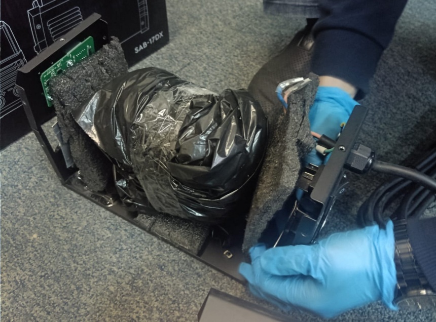 В ходе сканирования багажа водителя внутри агрегата нашли два пакета кристаллообразного вещества. Экспертиза установила, что это синтетический наркотик N-метилэфедрон.