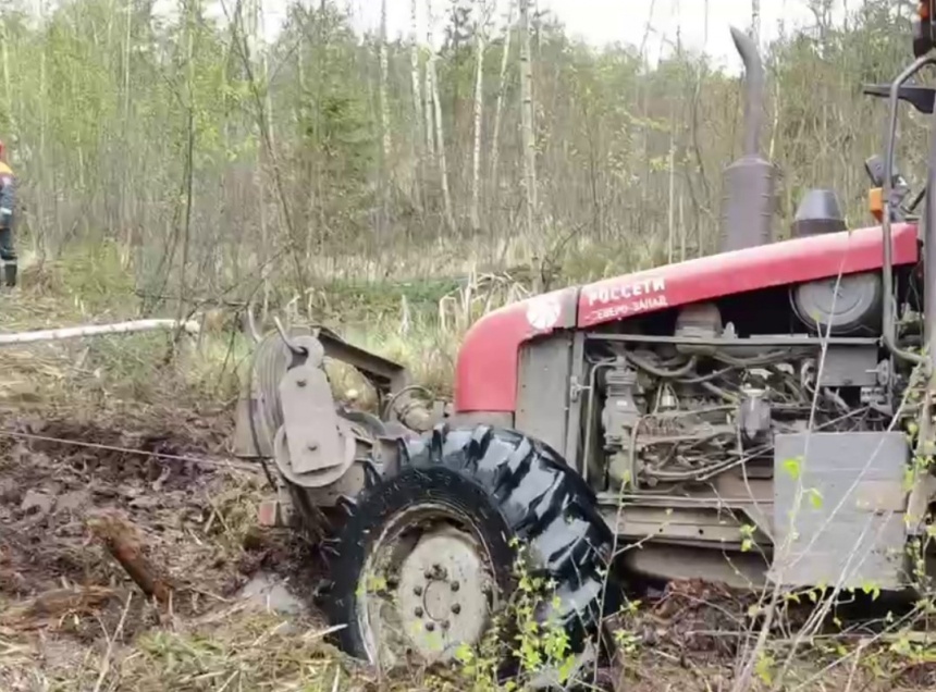 «В ямах с болотной грязью вязнет даже трактор. Застряли, выбрались, пробиваемся дальше: здесь наши ЛЭП», – прокомментировали энергетики.