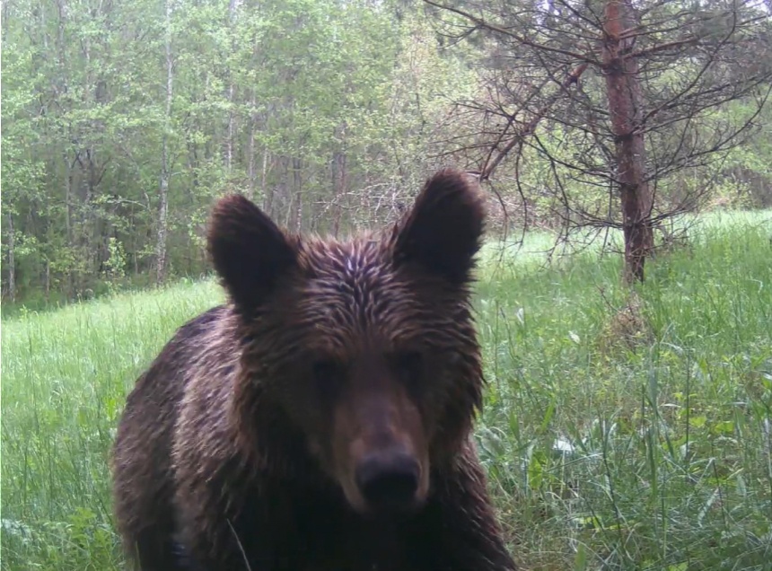 «В новом месте на опушке молодой медведь в течение недели попался в фотоловушку мне два раза», – поделился автор паблика и уточнил, что в ближайшее время поделится видеозаписью его мамы и её хищнических повадок, которую засняла другая камера. Этот же медведь растет правильно: «учуяв камеру, дал дёру».