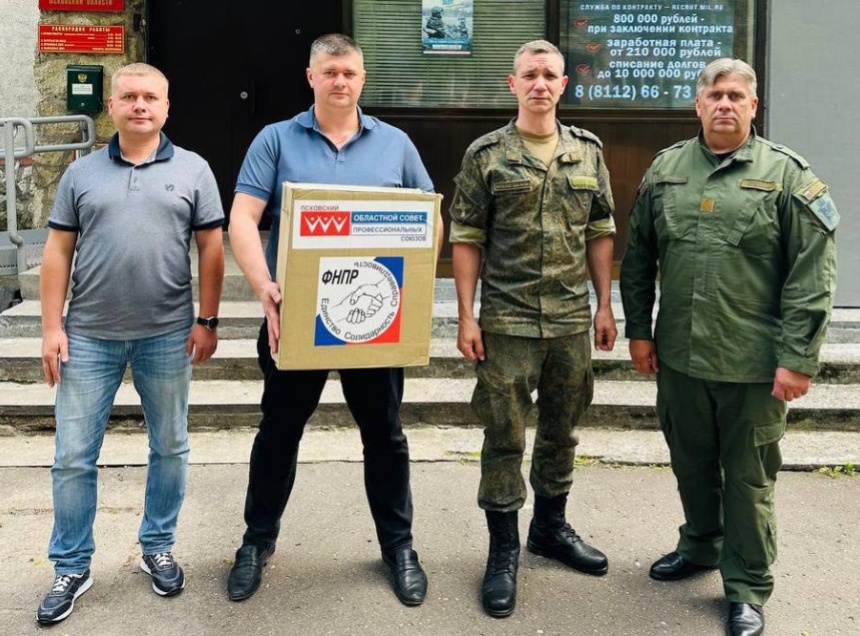 3 июня по заявке пункта отбора на военную службу по контракту Псковской области профсоюзы передали все необходимые вещи.