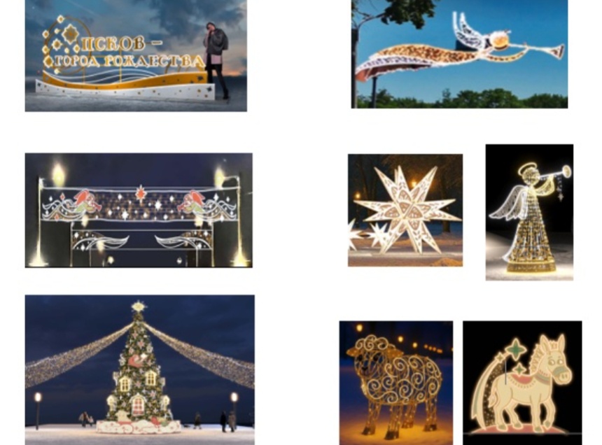 На Ольгинском мосту развесят 12 новых растяжек четырёх видов, на фонарных столбах по улице Советской установят пять консолей. Кроме того, появятся новые арт-объекты под названием «Псков – город Рождества», «Ангел», большая и малая объёмные звёзды, световые фигуры кролика, овцы, вола, птицы и мула. Ещё 10 арт-объектов украсят Детский парк: световые фигуры зайца, мула, вола, овечки и ангела.
