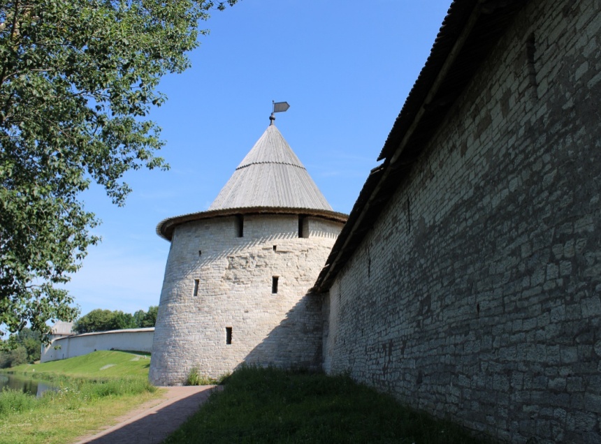 В Плоскую башню можно зайти только со стороны набережной реки Псковы.