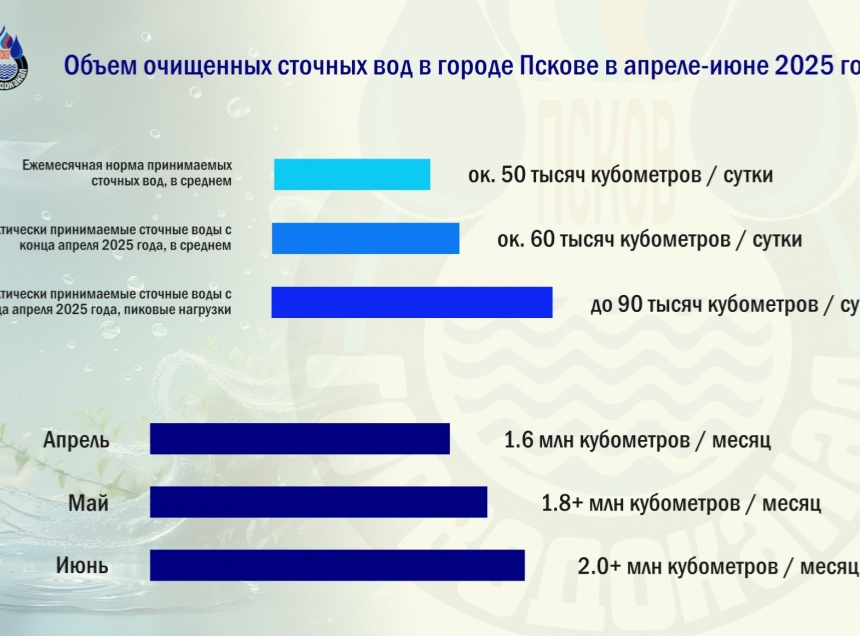 Обычно очистные сооружения канализации принимают около 50 тысяч кубометров сточных вод в сутки, а в последние три месяца эта цифра доходит до 60 тысяч кубометров, а то и 90 тысяч кубометров в отдельные дни. В июне предприятие очистило более двух миллионов кубометров сточных вод.