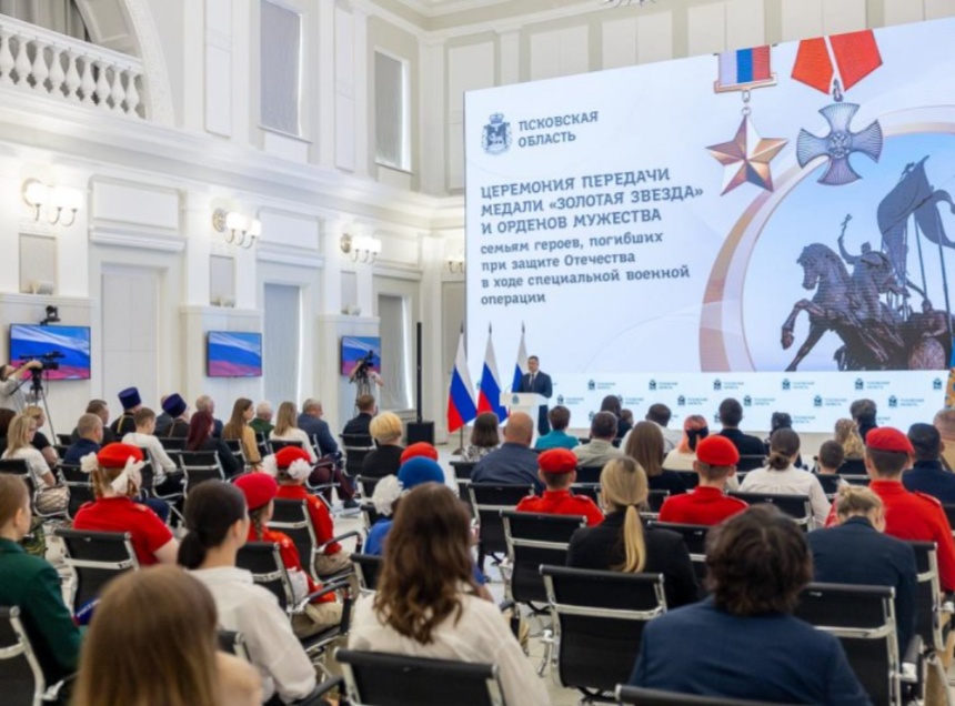 18 июля губернатор Псковской области Михаил Ведерников передал семьям военнослужащих, погибших при защите Отечества в ходе спецоперации, медаль «Золотая Звезда» и ордена Мужества. Об этом «Псковской правде» сообщили в пресс-службе регионального правительства. Поручение дал президента России Владимира Путина.