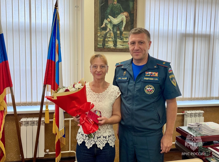 Ведомственную медаль «За спасение погибающих на водах» Надежде Колчевой 21 июля вручил руководитель регионального ведомства Сергей Лаврухин.