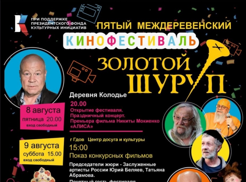 Мероприятие пройдет в Гдовском районе с 8 по 10 августа. Площадками станут Гдов и деревня Колодье. В числе гостей заслуженный артист России Юрий Беляев, заслуженная артистка России Татьяна Абрамова, композитор Александр Пинегин и детский писатель Андрей Усачев, а также актёр театра и кино Сергей Селин.