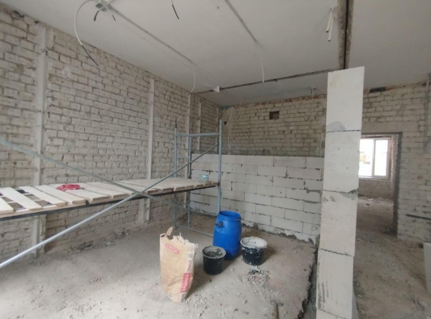 В настоящее время специалисты занимаются установкой внутренних перегородок в помещениях. После завершения работ по перепланировке специалисты подрядной организации займутся шпаклевкой и покраской стен под финишную отделку.