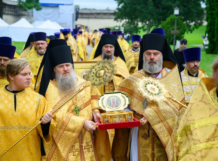 Митрополит Псковский и Порховский Матфей возглавил торжественную встречу мощей святителя у ворот Псковского кремля и Божественную Литургию в кафедральном соборе.
