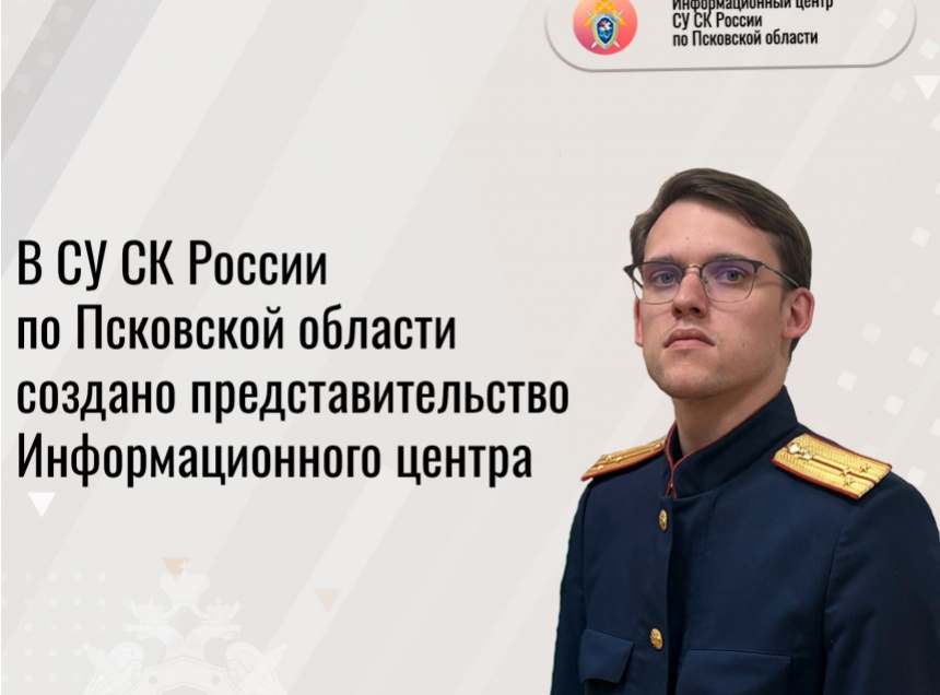 В Псковской области создали представительство Информационного центра Следственного комитета России. Об этом «Псковской правде» сообщили в пресс-службе регионального ведомства. Работать центр будет на базе регионального следственного управления и во исполнение поручения председателя Следственного комитета РФ Александра Бастрыкина.
