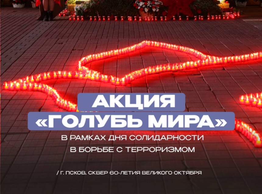 Псковичей приглашают присоединиться к ежегодной акции «Голубь мира». В сквере 60-летия Великого Октября зажжут свечи, выложенные в форме голубя – символа мира и надежды.