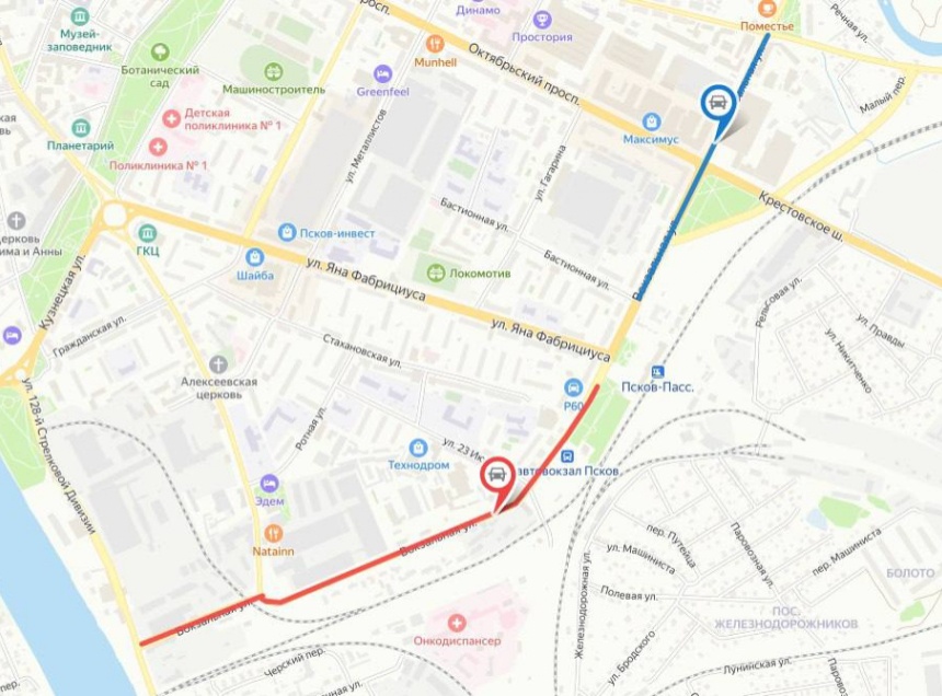 Первый участок проходит от пересечения с улицей 128-й Стрелковой Дивизии до дома №38 по улице Вокзальной, второй – от улицы Бастионной до улицы Льва Толстого.