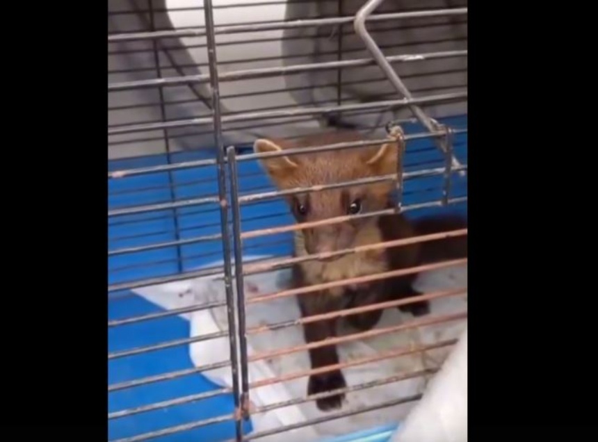 Неизвестно, как зверь попал внутрь. Куницу поймали сотрудницы магазина. Они посадили в клетку и привезли в подворье.