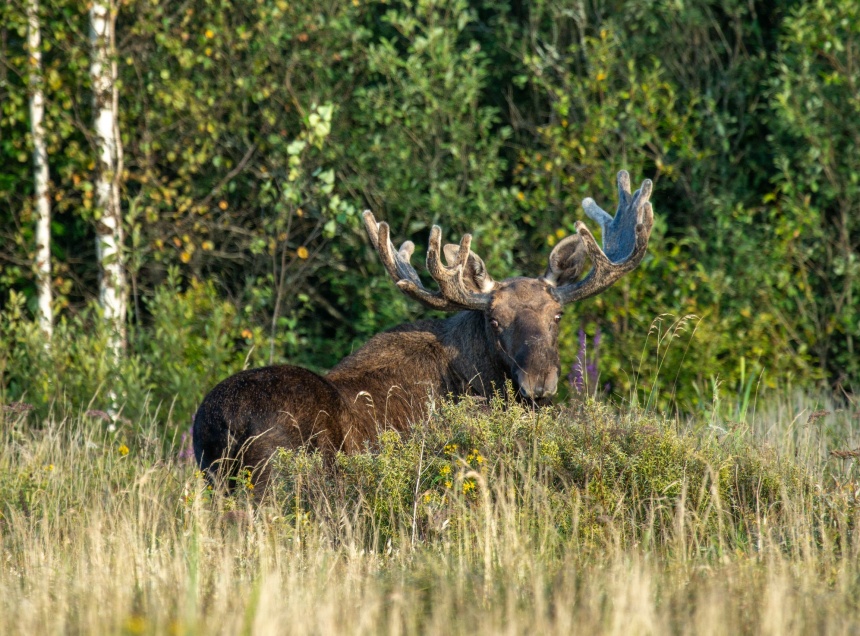 Антон Кораблев также запечатлел лося, двадцатидвухточечную божью коровку и паука-охотника, способного нырять и охотиться на мелкую рыбу. «Полистовский царь зверей в осенней короне. После брачного сезона лоси сбрасывают рога, чтобы отрастить новые через год», – прокомментировали сотрудники заповедника фотографию лося.