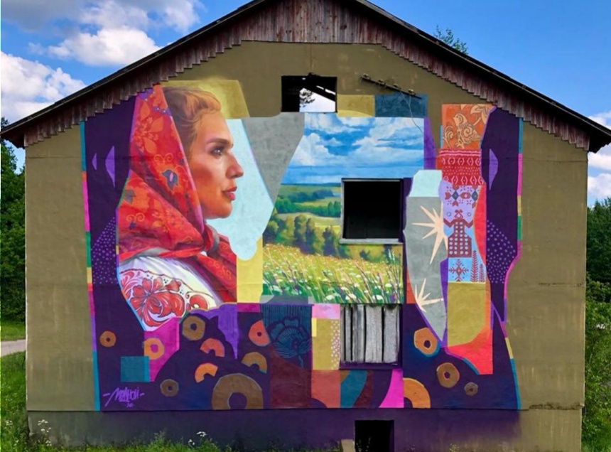 Мурал «Просторы» размером с трехэтажный дом нарисовал московский художник Алексей Медной в стрит-арт-деревне Щукино Пустошкинского района. Об этом сообщил продюсер ивент-проектов Андрей Деревенский в своем Телеграм-канале.