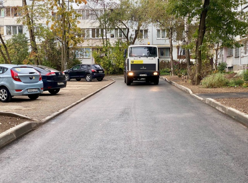В настоящее время специалистами порядной организации укладывается второй, финальный слой асфальта на проезде, а также на проезжей части.
