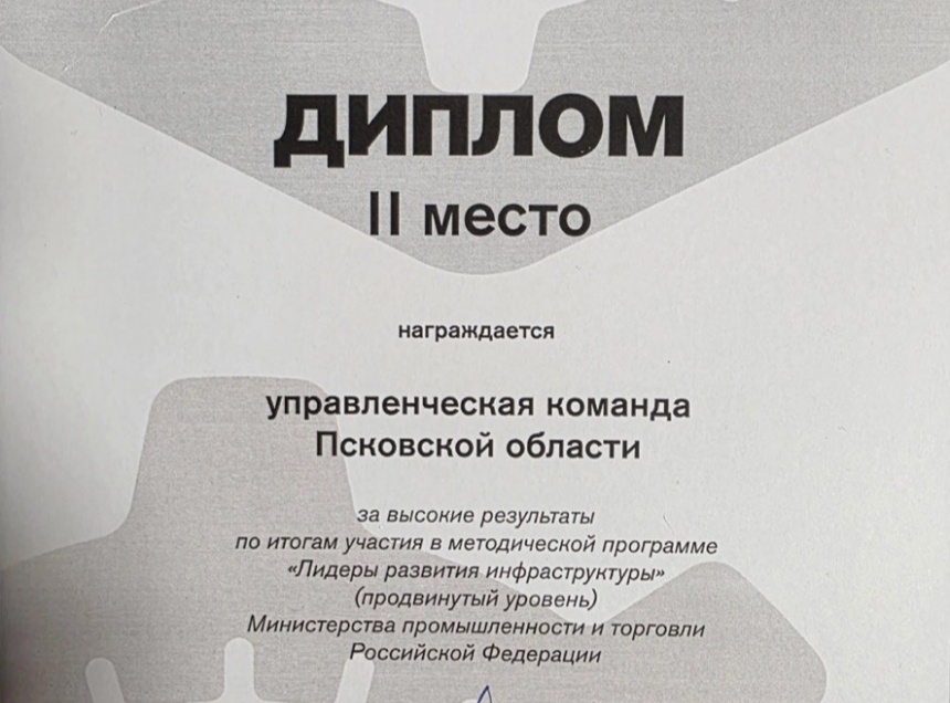 Высокие результате в методической программе Министерства промышленности и торговли РФ «Лидеры развития инфраструктуры» показала управленческая команда Псковской области. Как итог – диплом второй степени. Об этом «Псковской правде» сообщили в пресс-службе регионального министерства экономического развития.