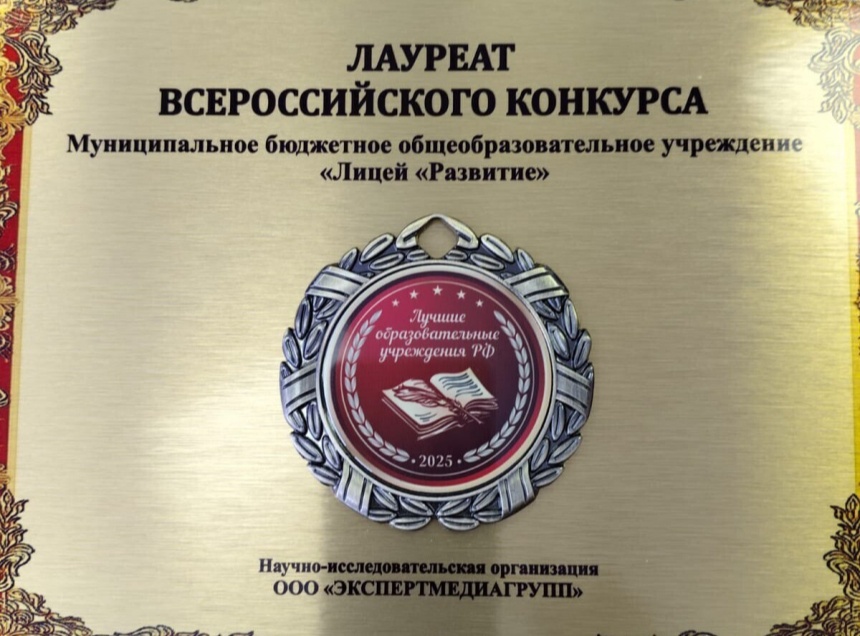 Лицей «Развитие» включили в реестр лауреатов конкурса «Лучшие образовательные учреждения РФ – 2025» после исследования, проведенного департаментом статистики и экспертизы научно-исследовательской организации «Экспертмедиагрупп».