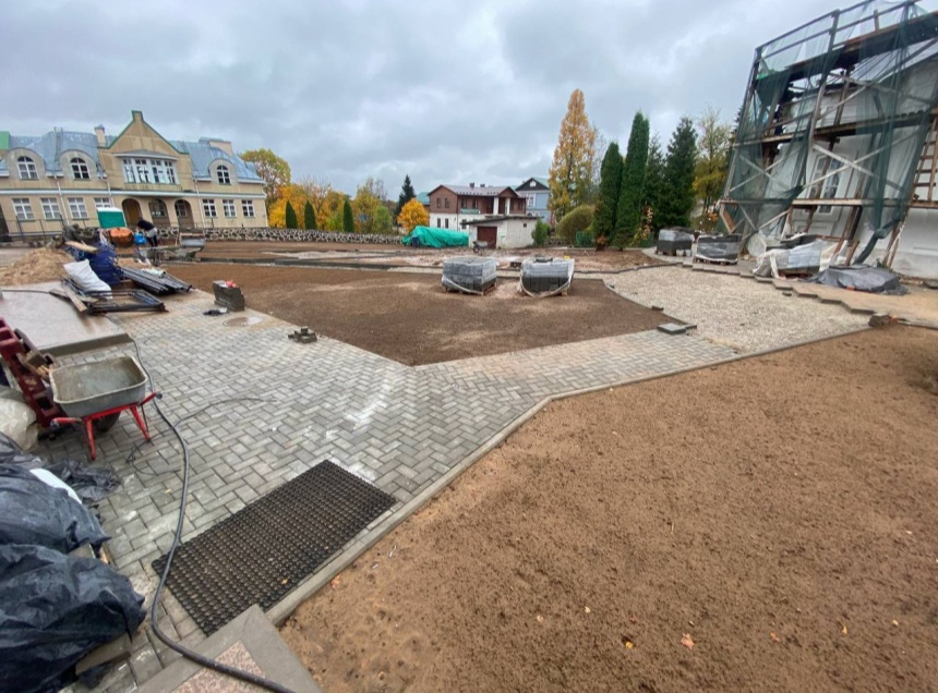 На данный момент у церкви завершается укладка тротуарной плитки. Кроме того, специалисты уже смонтировали приборы для архитектурной подсветки территории.