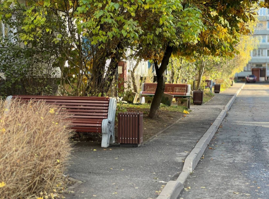 По его словам, в рамках проекта вдоль дома установили шесть скамеек и урн.