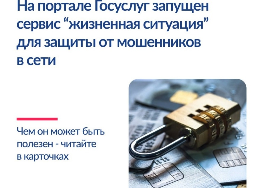 В качестве примера сервиса протестировали одну из новых жизненных ситуаций – «Защиту от мошенников в сети». Сервис объединил комплекс мер защиты, а также все доступные на портале «Госуслуги» инструменты противодействия злоумышленникам, включая новые сим-карты, самозапрет на кредиты, возможность проверки своей кредитной истории или информации о подозрительном звонке.