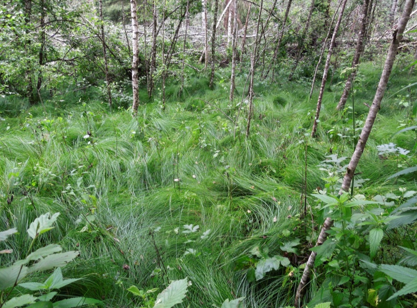 Ботаник нашла там европейскую осоку, или осоку трясунковидную, которую занесли в Новгородскую область вместе с фуражом и сеном во время военных действий.