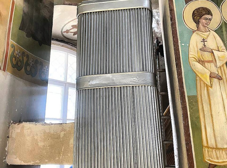 Кроме того, реставраторы уже укрепили фундаменты и кладку фасадов, заменили кровельное покрытие и стропильную систему на кровле, усилили балки колокольни.
