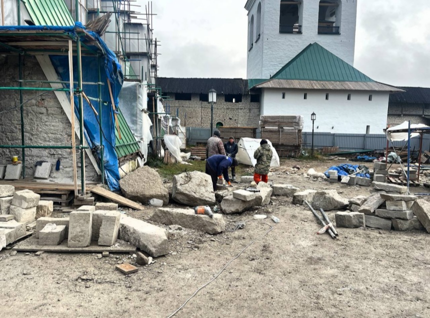Кроме того, реставраторами заготавливаются каменные материалы, которые будут использоваться для замены деструктированных участков кладки в местах вычинки.