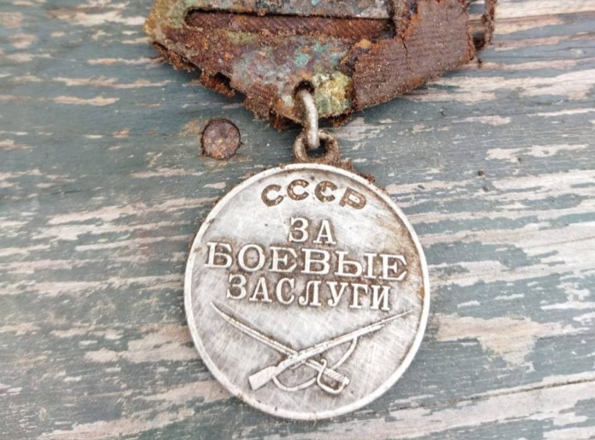 Местные жители передали поисковикам медаль «За боевые заслуги», которую нашли в поле рядом с домом почти в центре Печор.