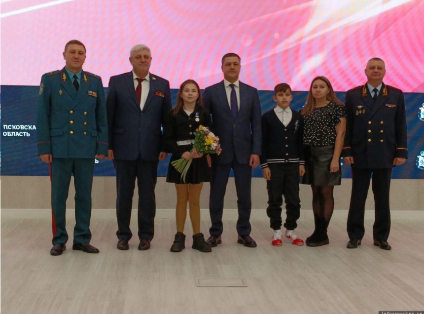 Также губернатор вручил награду ученице 7 «А» класса средней школы № 4 Опочки Виктории Соболевой. 22 мая она вывела из горящей квартиры младшего брата, являющегося инвалидом по слуху, и собаку. Кроме того, она предупредила соседей о пожаре.