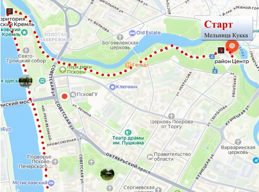 Дистанция составит 4,5 км. Забег начнется на набережной реки Псковы – участники стартуют от автопарковки у мельницы Кукка в Финском парке.