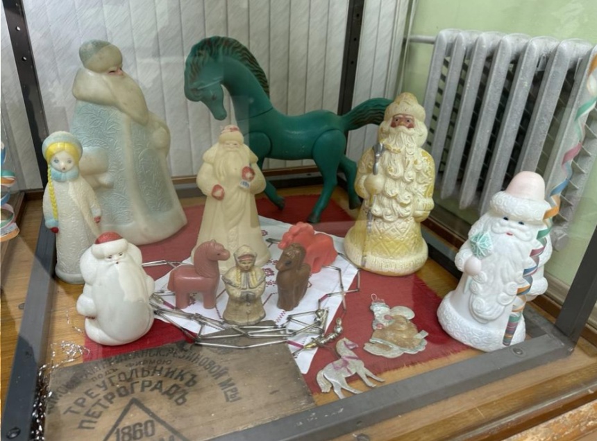 На выставке представлено более 50 экспонатов, среди которых коллекционные деды-морозы, снегурочки и другие новогодние елочные игрушки прошлого века, созданные советской промышленностью.
