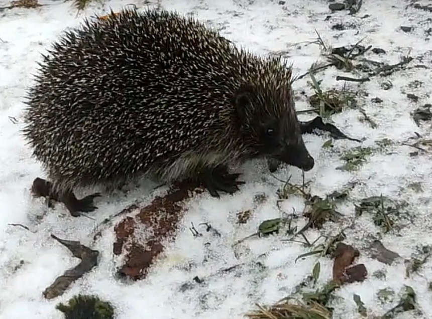 Ежа, гуляющего по снегу, засняла местный фотограф Ольга Васильева, пишет газета «Новосокольческий край».