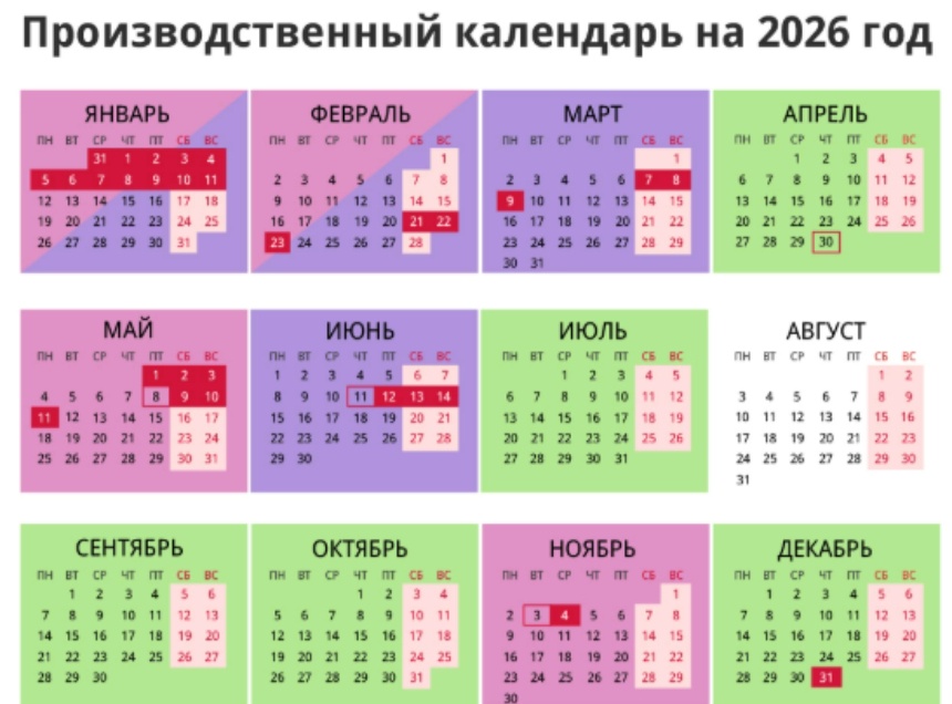 Aif.ru подготовил инфографику с производственным календарем. Туда включили все праздничные дни, переносы выходных, а также сокращенные рабочие дни.