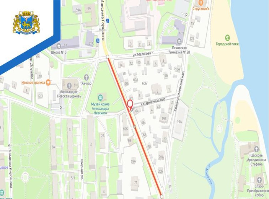 Участок улицы Максима Горького в Пскове перекроют почти на два месяца. Об этом «Псковской правде» сообщили в пресс-службе городской администрации.