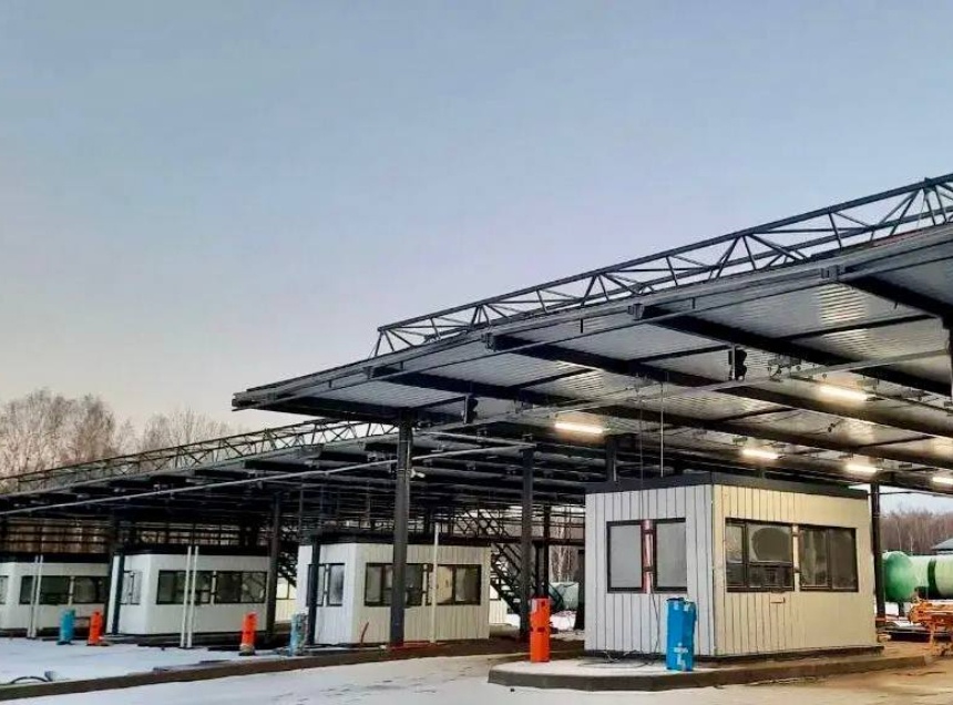 На данный момент в эксплуатацию введено здание таможенного оформления.