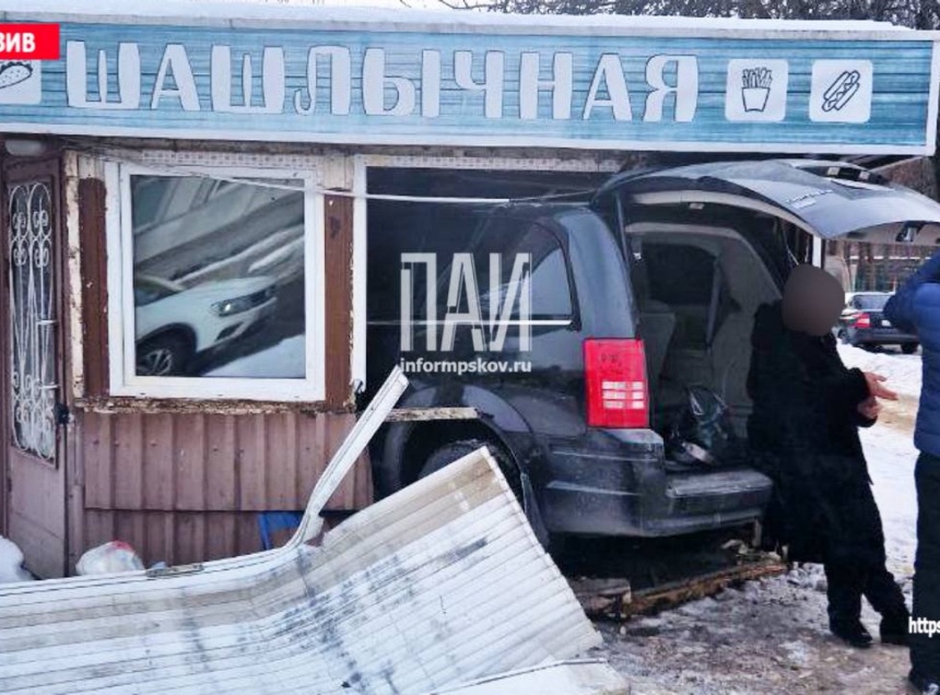 Автомобиль заехал в «Шашлычную» в Пскове. Об этом сообщается в Телеграм-канале «ПАИ. Псковская сводка».