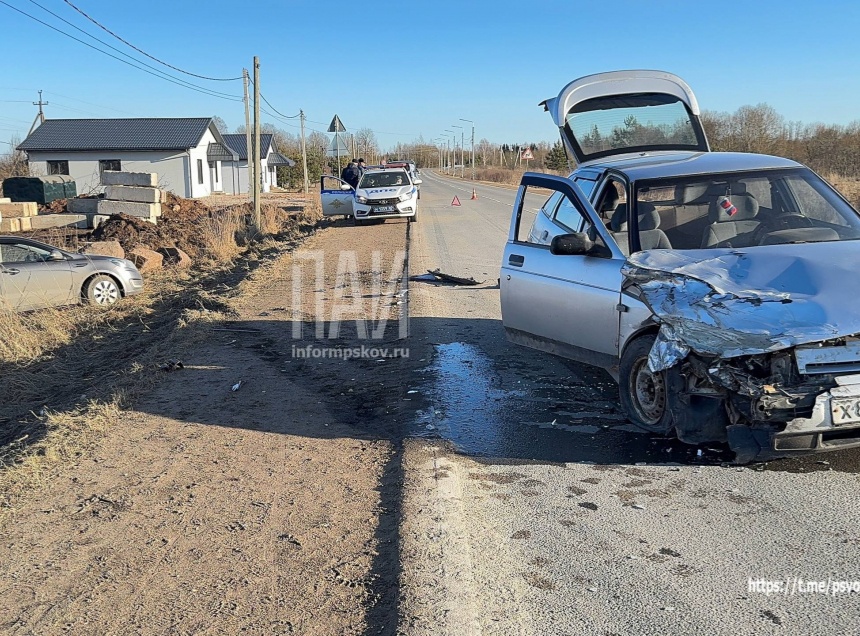 Автомобили ВАЗ-2112 и Kia Rio столкнулись в псковской деревне Логозовичи.