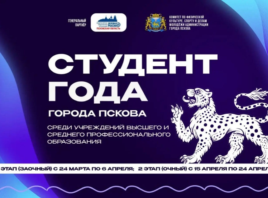 По его словам, участие в конкурсе «Студент года города Пскова» могут принять студенты второго курса и старше очной формы обучения как вузов, так и колледжей, проявившие себя в прошлом учебном году – в науке, учебе, спорте, творчестве, профессиональной или общественной деятельности.