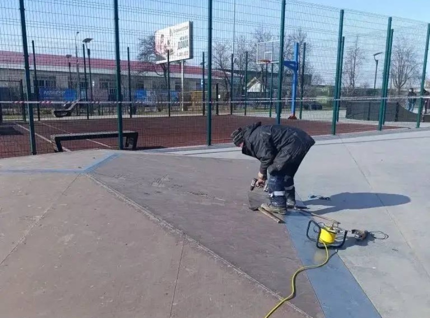По его словам, в скейт-парке на улице Леона Поземского подрядчик устраняет дефекты – ликвидирует неровности, которые проявились после прошлого сезона.
