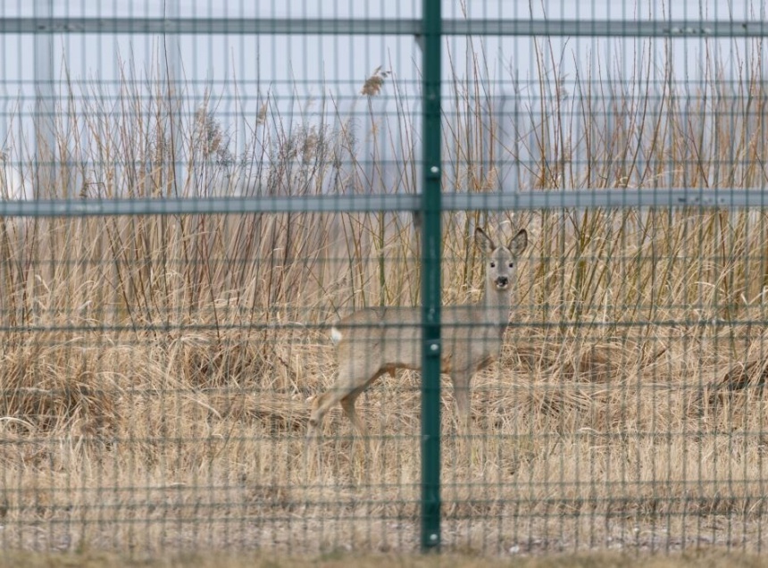 Животных заметили у крупного предприятия, расположенного на въезде в Псков. Косули прогуливались по его территории. Заметив людей, они побежали вдоль забора.