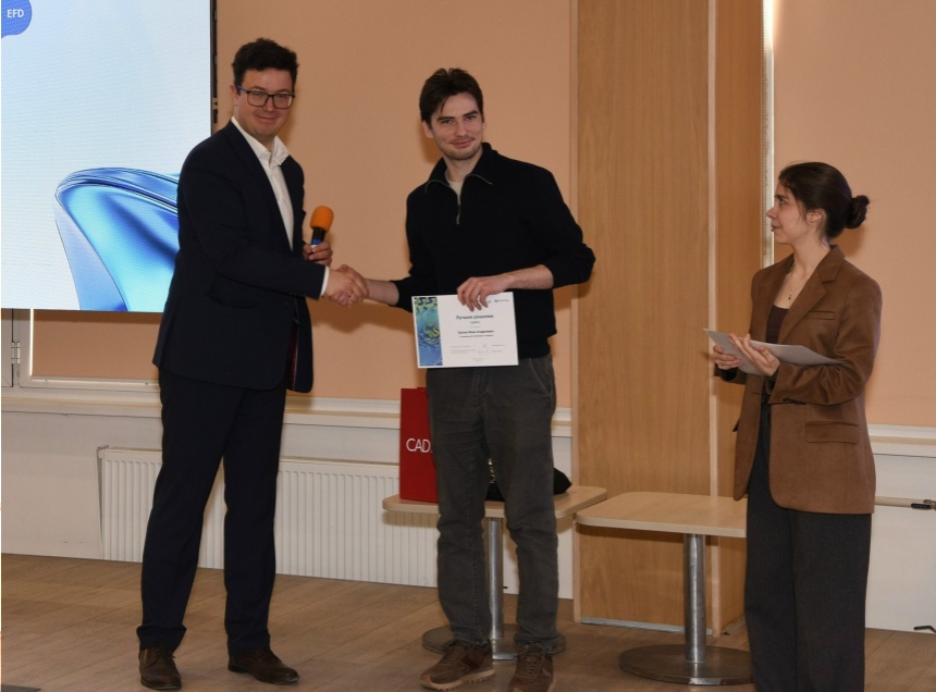 Он взял третье место в треке «Гидродинамика». Его также удостоили специальной награды от вендора – компании «КАДФло». Решение Ивана Орлова признано лучшим среди участников, работавшим в этом программном комплексе.