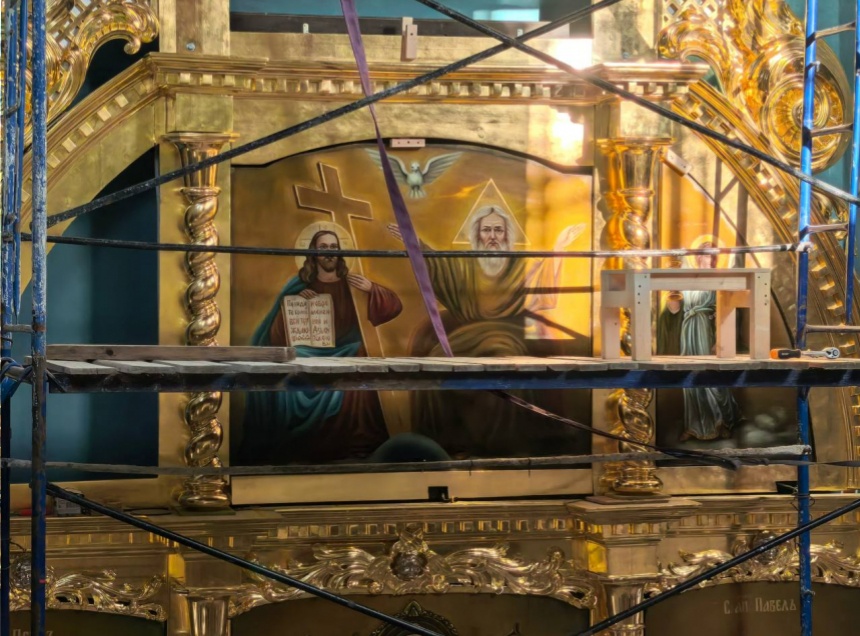 В Печорах продолжается монтаж иконостаса церкви Сорока Севастийских мучеников. На этой неделе специалисты установили колонны третьего яруса, а основание конструкции постепенно украшается отреставрированным декором с позолоченным растительным орнаментом. Об этом сообщается в Telegram — канале АНО «Возрождение объектов культурного наследия в г. Пскове (Псковская область).