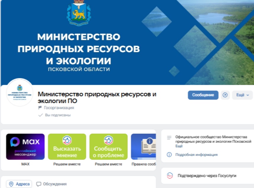 Официальные цифровые каналы развивает министерство природных ресурсов и экологии Псковской области, обеспечивая жителям региона доступ к актуальной достоверной информации о состоянии природных ресурсов и окружающей среды. Об этом «Псковской правде» сообщили в пресс-службе правительства Псковской области.
