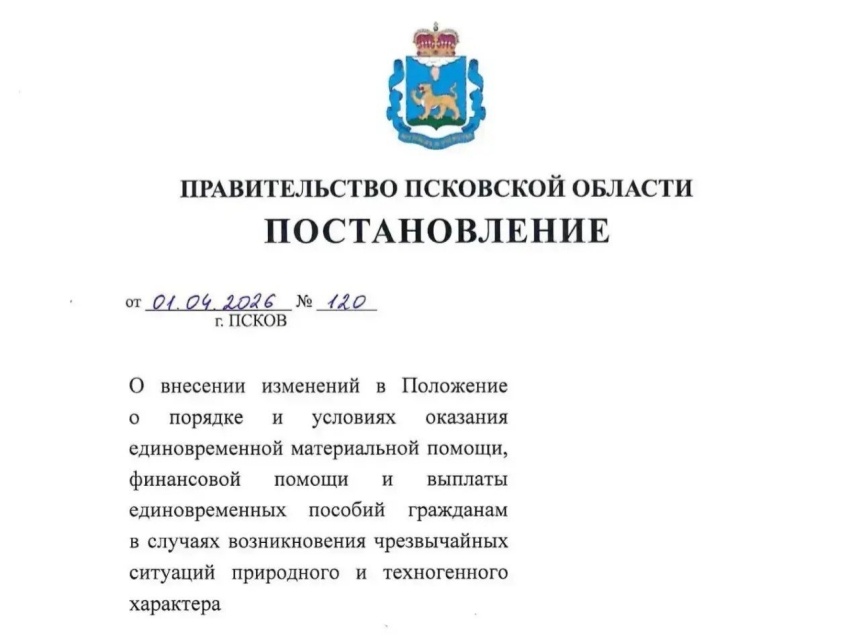В Псковской области сократили срок рассмотрения заявлений граждан на получение единовременной материальной помощи при утрате имущества в результате ЧС. Об этом губернатор Михаил Ведерников сообщил в своем канале в мессенджере МАХ.