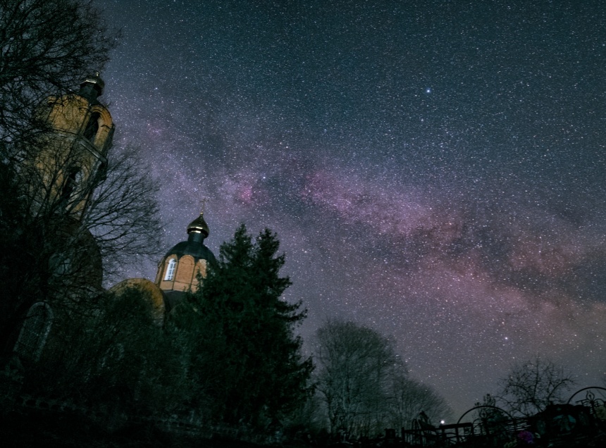 Млечный Путь над храмом в Пыталовском районе запечатлел астрофотограф Петр Митрофанов. Фотографиями он поделился в группе «АстроПсков» в «ВКонтакте».