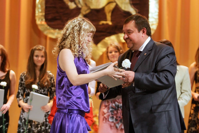 Золотые медали выпускникам вручал Глава города Иван Цецерский. С приветственным словом к выпускникам обратился заместитель Главы Администрации города Пскова Александр Вологжанин: «Дорогие выпускники, родители, вы для нас злато и серебро нашего города. Сегодня много говорится о развитии нашей страны, о стратегии - 2020. Но самое главное, чтобы вы понимали, что стратегия 2020 - это вы». Александр Вологжанин также подчеркнул, что выпускников ждет большая и насыщенная интересными событиями жизнь.