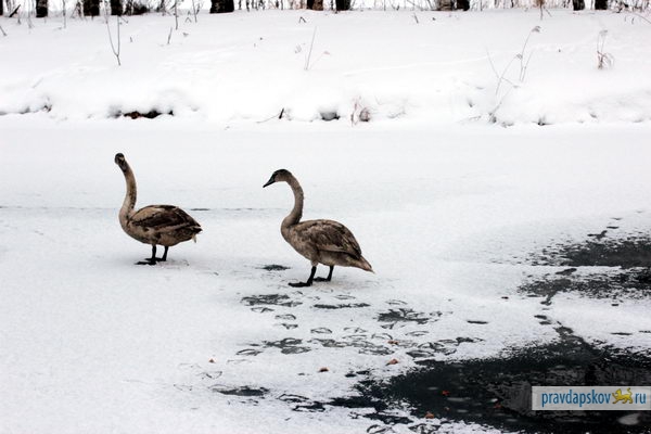 Лебеди с Городищенского озера под Изборском наконец обрели приют. На прошлой неделе сотрудники Псковской областной ветлаборатории снова забрали погибающих птиц с мороза (24 января лебедей после непродолжительного лечения выпустили в Мирожский водоем) и передали в питомник «Птичий дворик», где они благополучно проживут до весны.