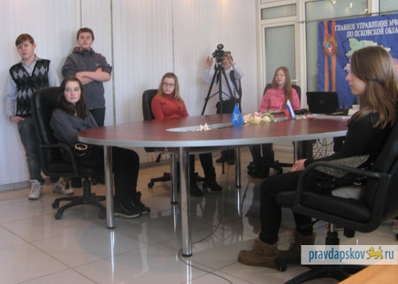 Школьники 7 класса школы № 24 в Пскове пришли на экскурсию в Центр управления в кризисных ситуациях Главного управления МЧС России по Псковской области.
