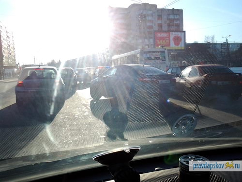 В Пскове на улице Коммунальной от перекрестка с улицей Печорской до пересечения с улицей Юбилейной образовалась пробка, передает корреспондент «Псковской правды»