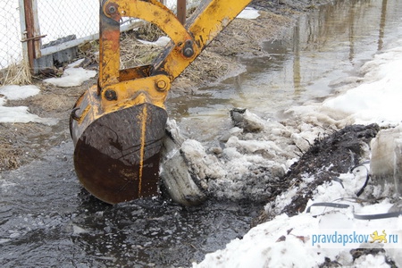 Администрация Пскова проводит к ежедневный мониторинг городской территории в местах вероятного подтопления поверхностными талыми водами.